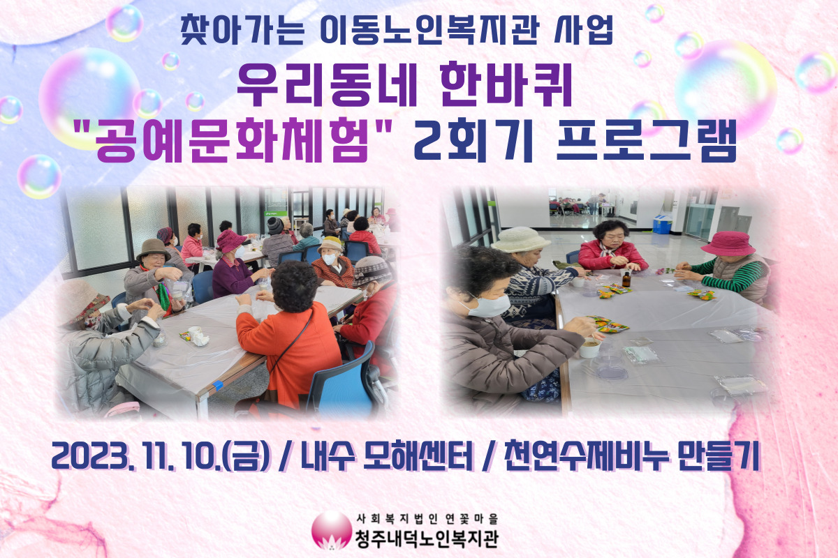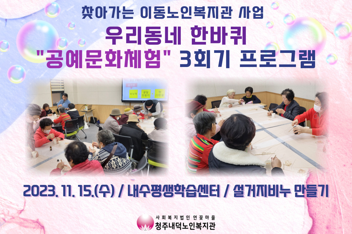 청주내덕노인복지관에서는 10/31(화)부터 11/15(수)까지 3회기에 걸쳐