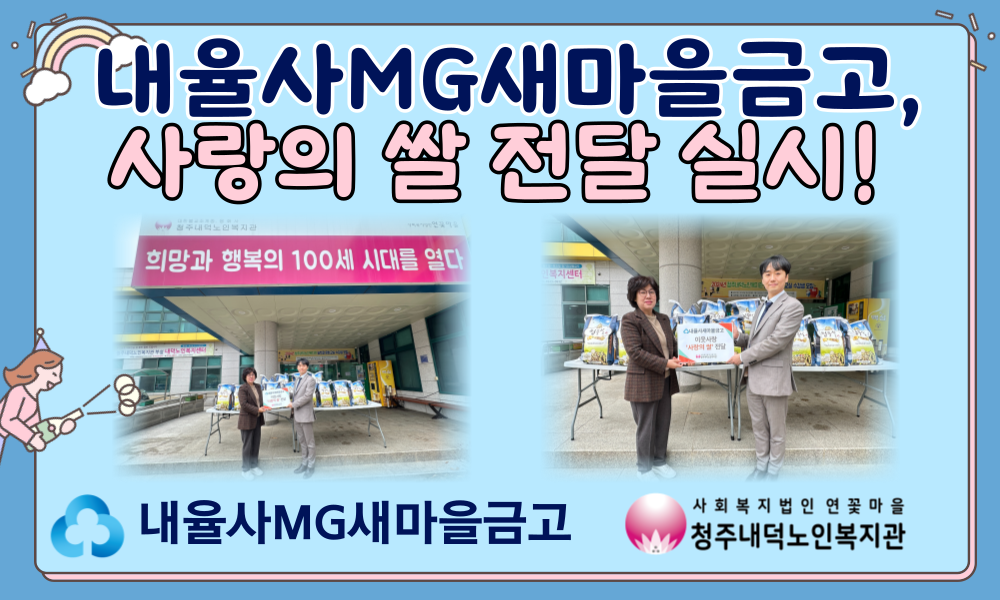 내율사MG새마을금고에서 2024년 새해를 맞이하여 청주내덕노인복지관에 이웃사랑 "사랑의 쌀"을 30포 지원해주셨습니다!!