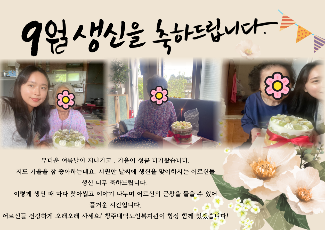 9월에 생신을 맞이하신 어르신들을 위해 생신지원서비스를 실시하였습니다.