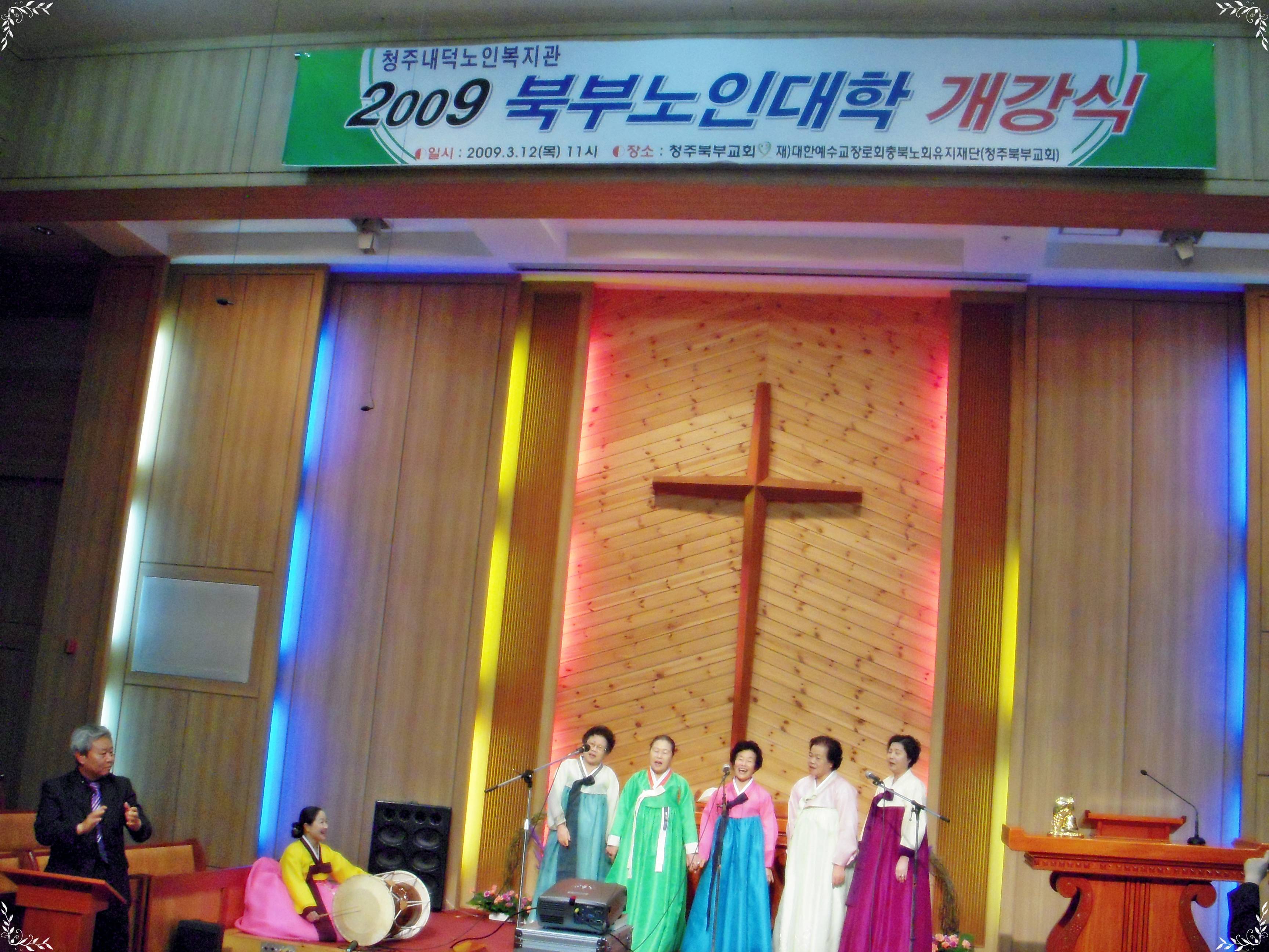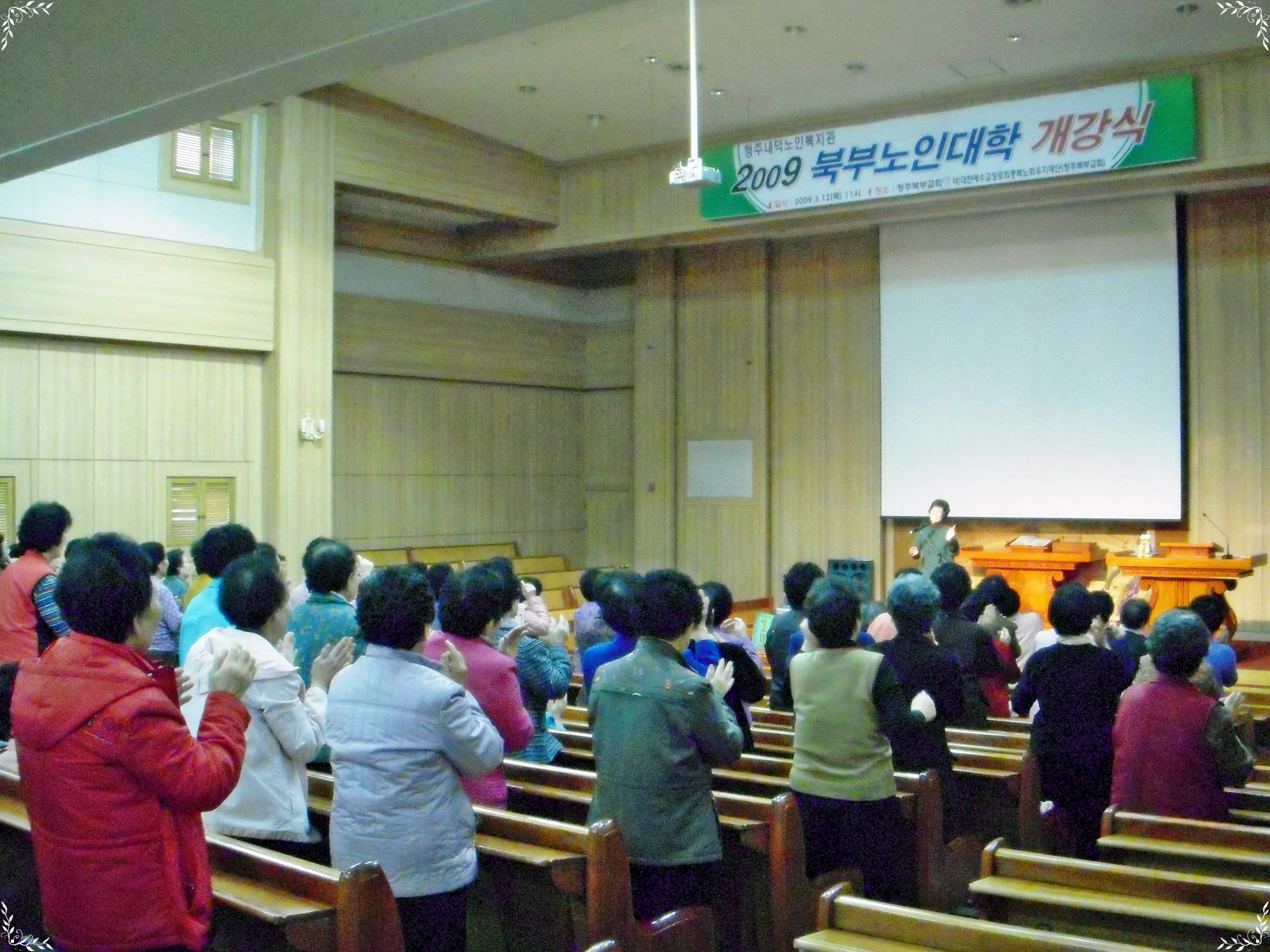 청주내덕노인복지관 북부경로대학 개강식을 10시 30분에 청주북부교회에서 진행하였습니다.