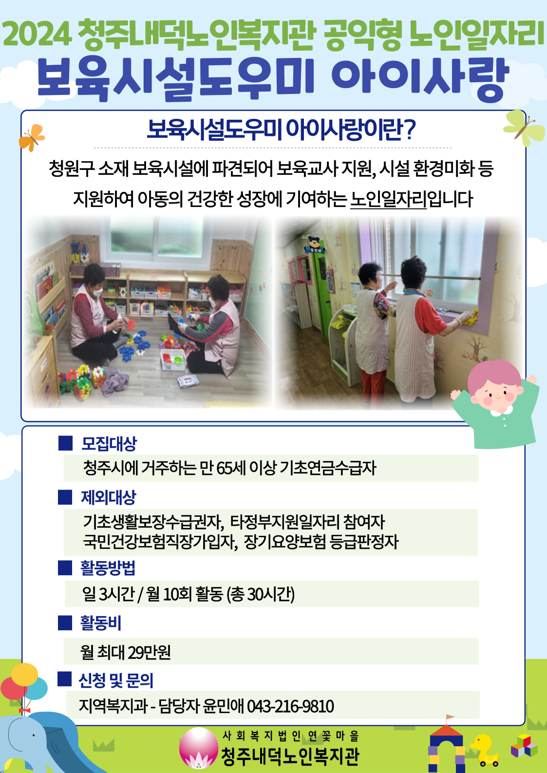 [모집] 보육시설도우미 아이사랑 노인일자리 참여자 모집
