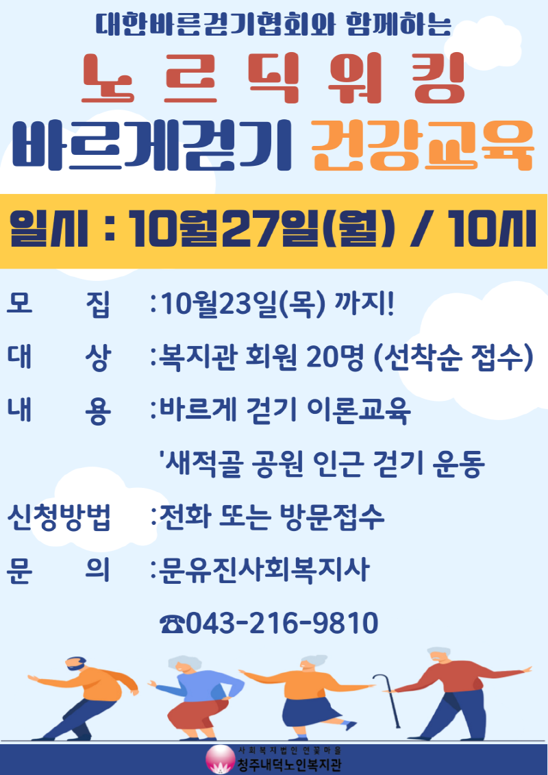 청주내덕노인복지관에서는 10월 27일(월) 10시